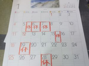 1月の定休日になります。
