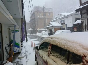 今朝は雪の松之山温泉!